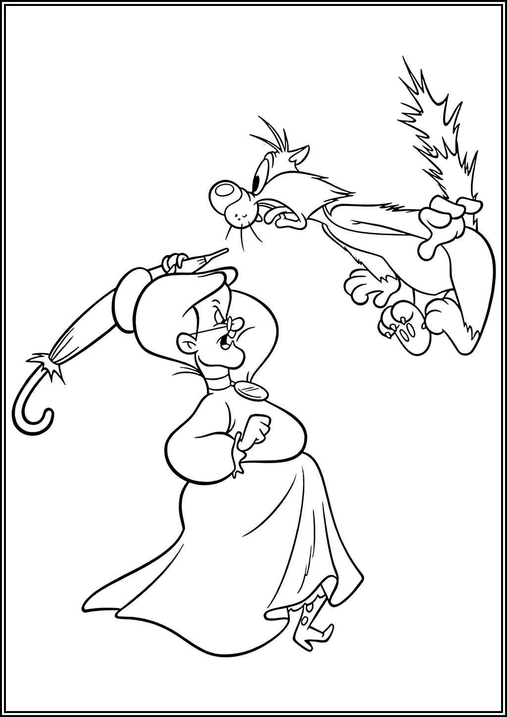 Download Free printable Sylvester the Cat coloring pages and enjoy coloring! Just click on the picture to get a PDF file. You can print it and start right away. All coloring page are free to download and use. Have fun and get creative!